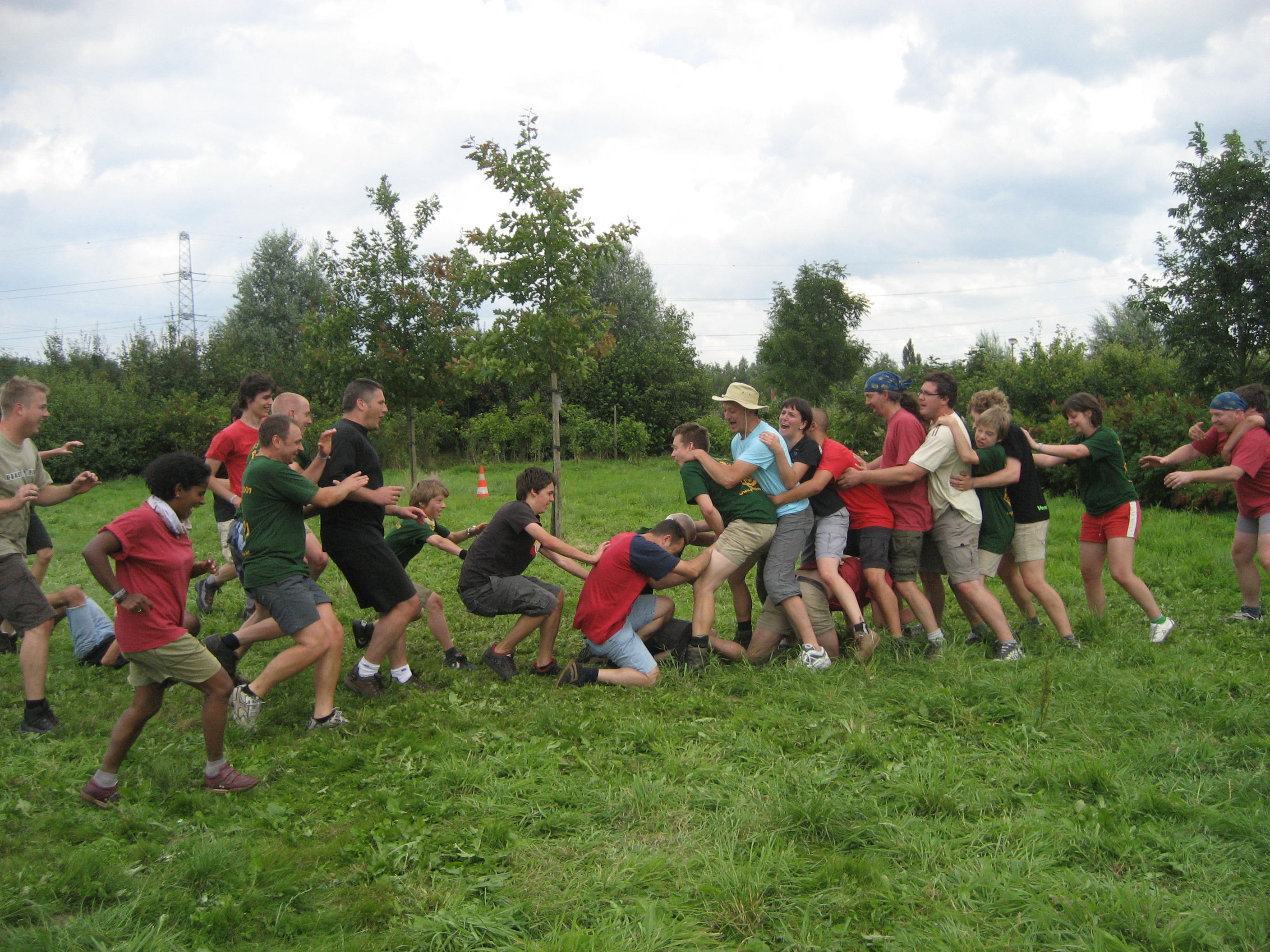 Zoals we gewoon zijn vanop chirokamp moeten er, voordat we kunnen spelen, een aantal diensten gebeuren. Het