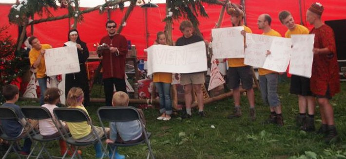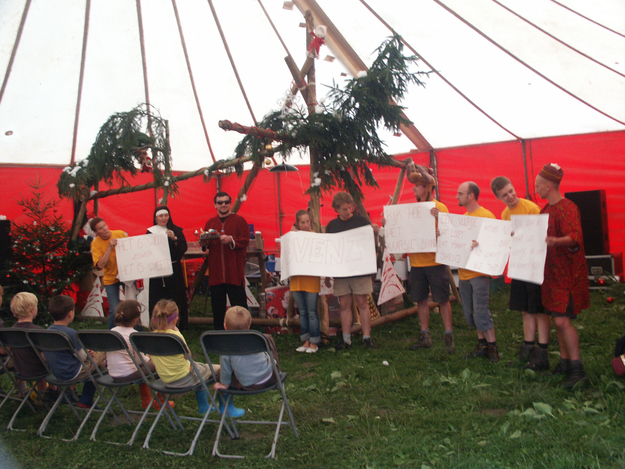 nog liever in hun slaapzak zijn, waren er al een aantal aktief en brachten ze een toneeltje, liedje of een tip.Het is weer zover, het is weer advent. Kijk hoe het kaarsje brandt, een vuurtje dat loopt ...