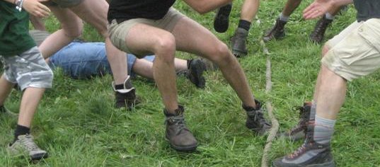 Natuurlijk konden de massaspelen niet vergeten worden. Van wie zijn deze gespierde benen?